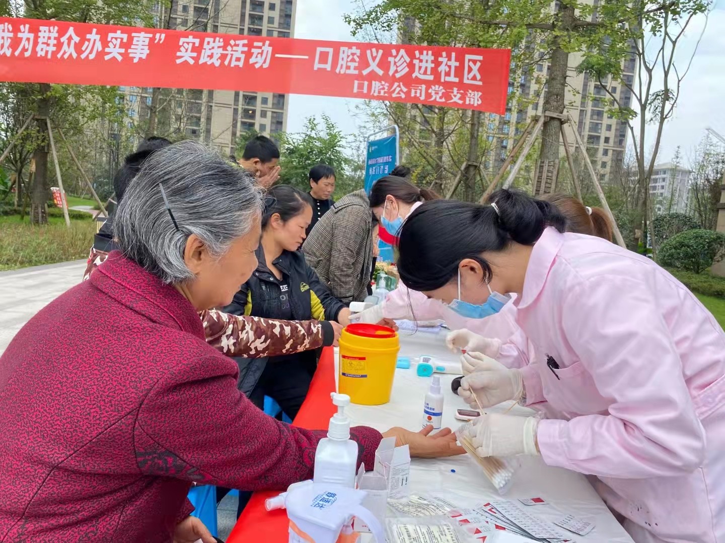 10月30日,中共瀘州口腔醫(yī)療投資管理有限公司支部到納溪區(qū)綠地城小區(qū)開展“我為群眾辦實事”口腔健康義診活動,引導(dǎo)全體醫(yī)護(hù)黨員將學(xué)習(xí)黨史成果轉(zhuǎn)化為為群眾辦實事的實際行動。義診專家團(tuán)隊為前來就診的群眾免費測血糖、測血壓、口腔咨詢檢查,并詳細(xì)講解病情,耐心解答疑問。本次義診活動共計接待小區(qū)居民300人,其中口腔檢查及咨詢280人次,血壓測量250人次,血糖測量80人次。本次活動有效增強人民群眾的健康獲得感和幸福感,切實將口腔保健的惠民服務(wù)落到實處。