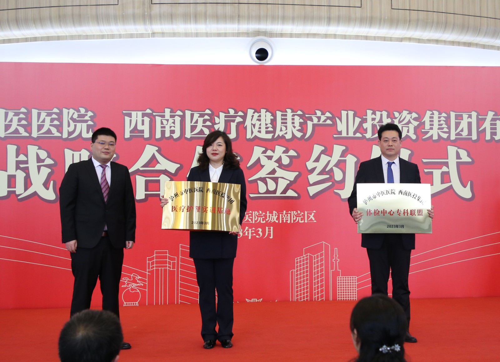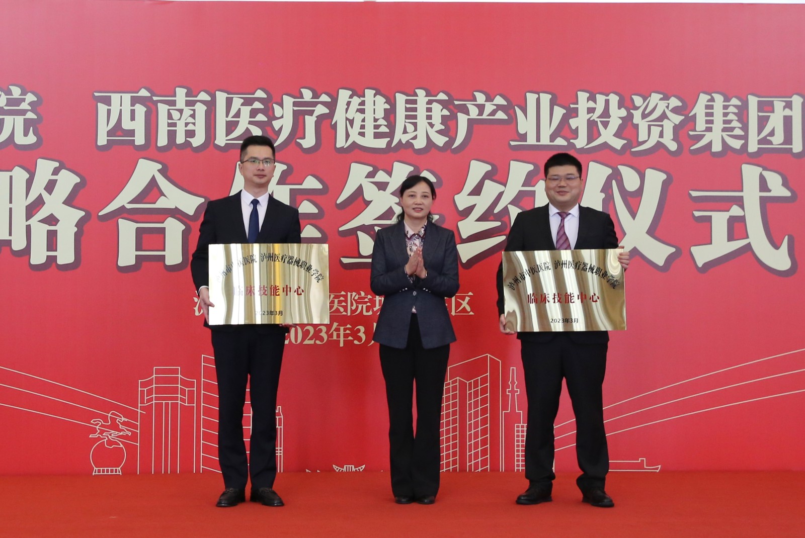 儀式上,雙方簽訂了戰(zhàn)略合作協(xié)議,對(duì)合作的瀘州市中醫(yī)醫(yī)院·西南醫(yī)投集團(tuán)醫(yī)療護(hù)理實(shí)訓(xùn)基地、體檢中心專科聯(lián)盟,瀘州市中醫(yī)醫(yī)院·瀘州醫(yī)療器械職業(yè)學(xué)院臨床技能中心進(jìn)行了授牌。