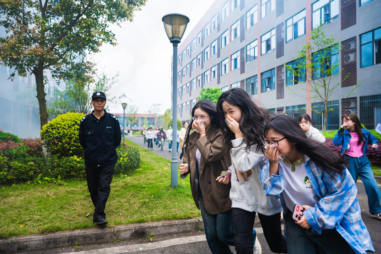 本次演練模擬學(xué)生宿舍電氣火災(zāi)事故。隨著濃煙忽起,聲光報警系統(tǒng)聯(lián)鎖啟動,伴隨著急促的警報聲,學(xué)校立即啟動應(yīng)急預(yù)案,各應(yīng)急救援小組迅速行動,有序組織學(xué)生疏散撤離,呼叫和引導(dǎo)消防救援力量趕赴現(xiàn)場,高效實施滅火救援,火勢快速得到有效控制。此次演練準(zhǔn)備充分,演練方案詳實,過程組織有序,取得效果顯著。