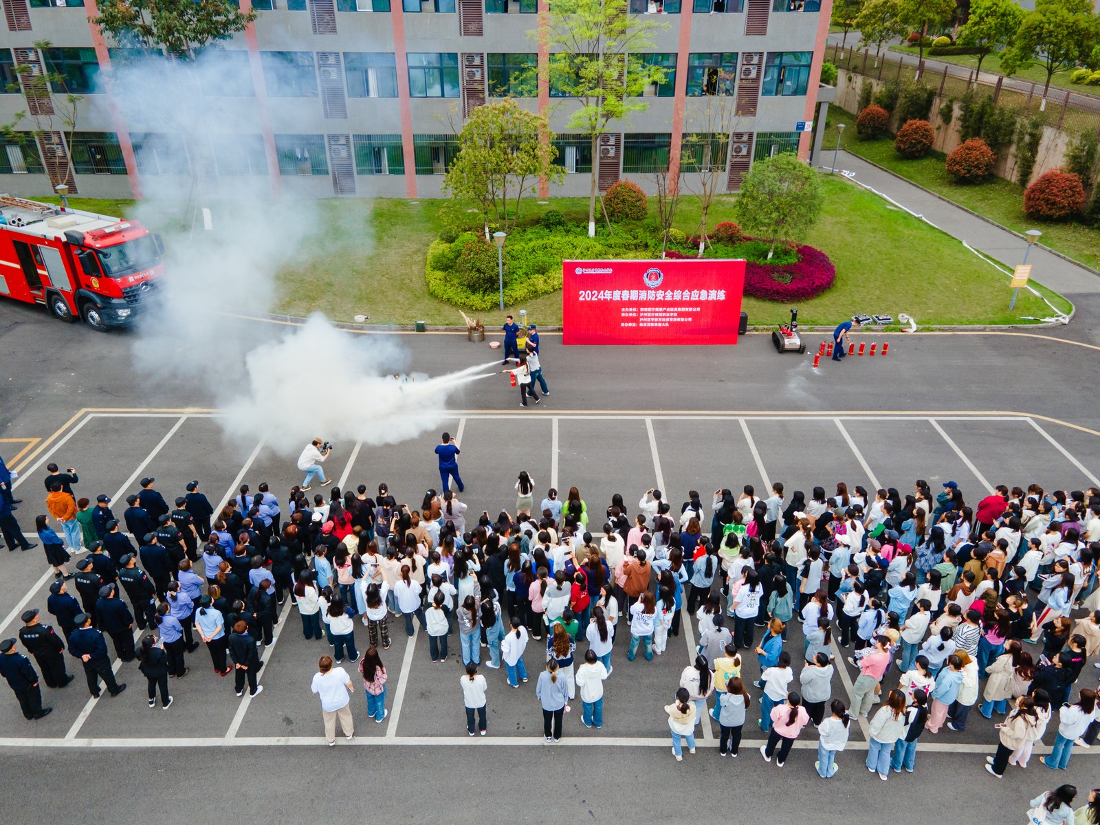 通過本次消防安全綜合應(yīng)急演練,進(jìn)一步檢驗了校內(nèi)實戰(zhàn)處突、協(xié)同聯(lián)動和快速反應(yīng)能力,為有效預(yù)防和消除校園火災(zāi)事故險情、維護(hù)校園平安和諧和集團(tuán)安全高質(zhì)量發(fā)展奠定了堅實的基礎(chǔ)。
