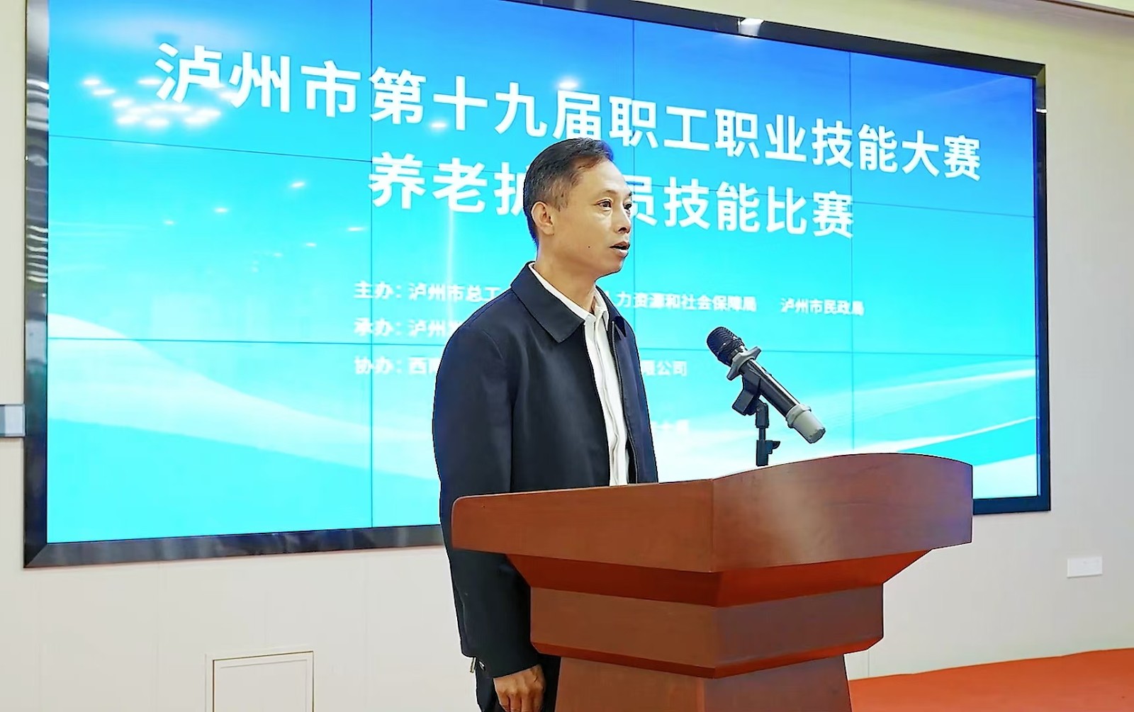 本次比賽由瀘州市總工會、瀘州市人社局、瀘州市民政局主辦,瀘州發(fā)展控股集團承辦,西南醫(yī)投集團協(xié)辦,全市共有24名選手參賽。比賽采用理論知識考試和實踐技能操作相結(jié)合的方式,主要考核參賽人員對人社部頒發(fā)的《養(yǎng)老護理員國家職業(yè)標準》等理論知識和技能操作要求的掌握程度。