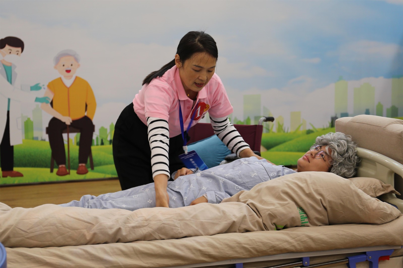 為進一步提高我市養(yǎng)老服務(wù)水平,加強養(yǎng)老護理人才隊伍建設(shè),展現(xiàn)養(yǎng)老護理員的職業(yè)風采與專業(yè)技能,10月16日—17日,瀘州市第十九屆職工職業(yè)技能大賽養(yǎng)老護理員技能比賽在春江酒城嘉苑順利舉辦。瀘州市總工會黨組成員、副主席鄭智,發(fā)展控股集團黨委副書記、紀委書記、工會主席鄺利,西南醫(yī)投集團黨委副書記、總經(jīng)理楊虹,黨委委員、常務(wù)副總經(jīng)理武瑛,市總工會、市人社局、市民政局相關(guān)負責同志蒞臨現(xiàn)場指導(dǎo)。